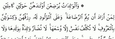 والوالدات يرضعن أولادهن حولين كاملين لمن أراد أن يتم الرضاعة