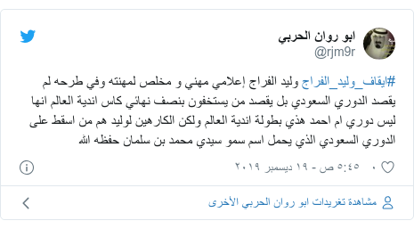 وليد الفراج تويتر. ايقاف وليد الفراج اتجاهات تويتر. We would like to show you a description here but the site won t allow us. وليد الفراج اتجاهات تويتر. وتصدر هاشتاغ إيقاف وليد الفراج موقع تويتر بعد غياب الفراج عن تقديم عدة حلقات من.